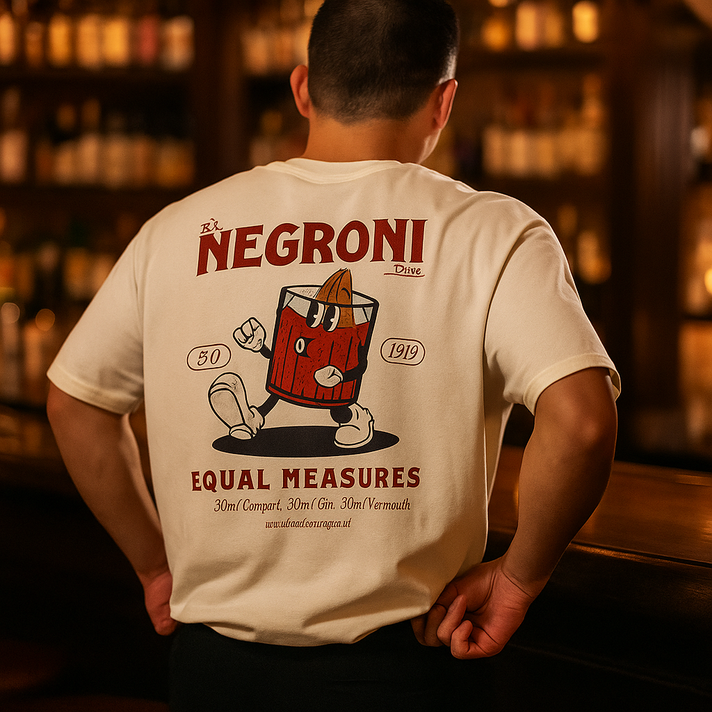Raise your glass to style with our exclusive Sip & Stroll Graphic Tee, celebrating the timeless Negroni cocktail. Established in 1919, the Negroni is a beloved classic, and our shirt pays homage to this iconic drink with a playful and vibrant design that's perfect for any cocktail enthusiast.